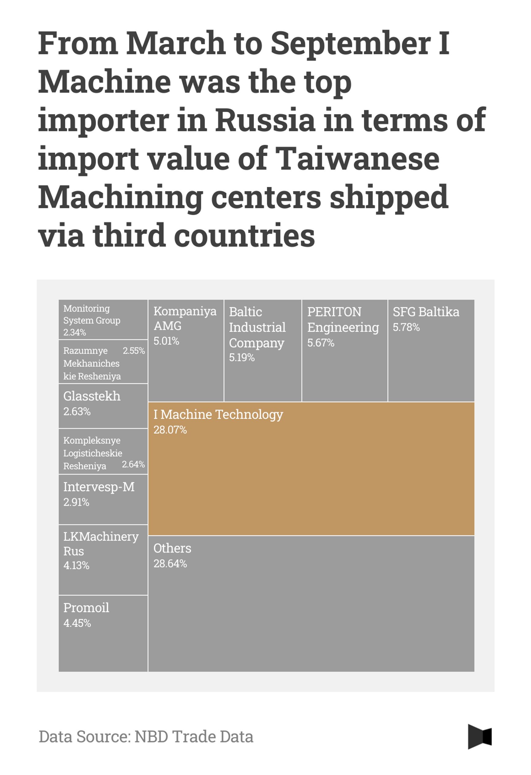 Between March and October 2023, I Machine Technology imported at least $17 million worth of Taiwanese machine tools. Among them were 28 units shipped via Turkey, 37 via China and 16 directly from Taiwan.