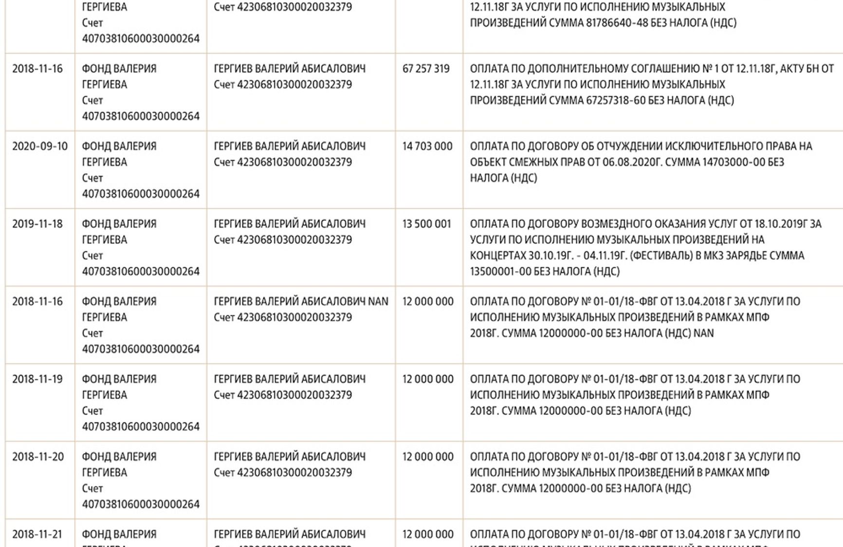 Также с 2018 по 2020 годы Гергиев перевел из благотворительного фонда более 300 млн рублей на свой личный счет.