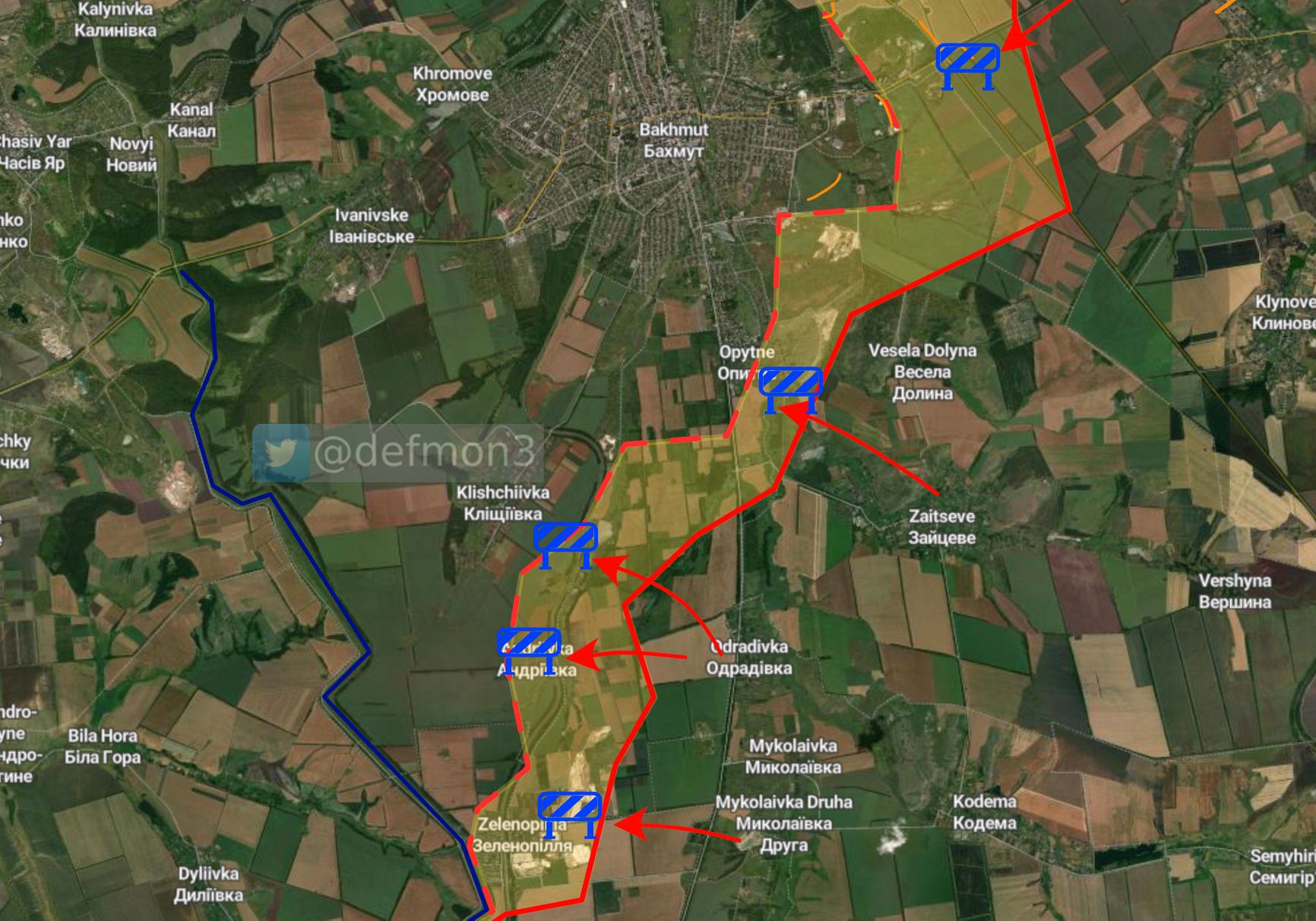По словам Машовца, в районе Курдюмовки российское командование развернуло дополнительно по крайней мере два батальона, их задача — совместно с ЧВК Вагнера прорваться к рубежу Белая Гора – Клещиевка. Так они смогут создать себе удобные условия для развития дальнейшего наступления как в сторону Константиновки, так и в направлении Ивановское и Бахмут (с юга).