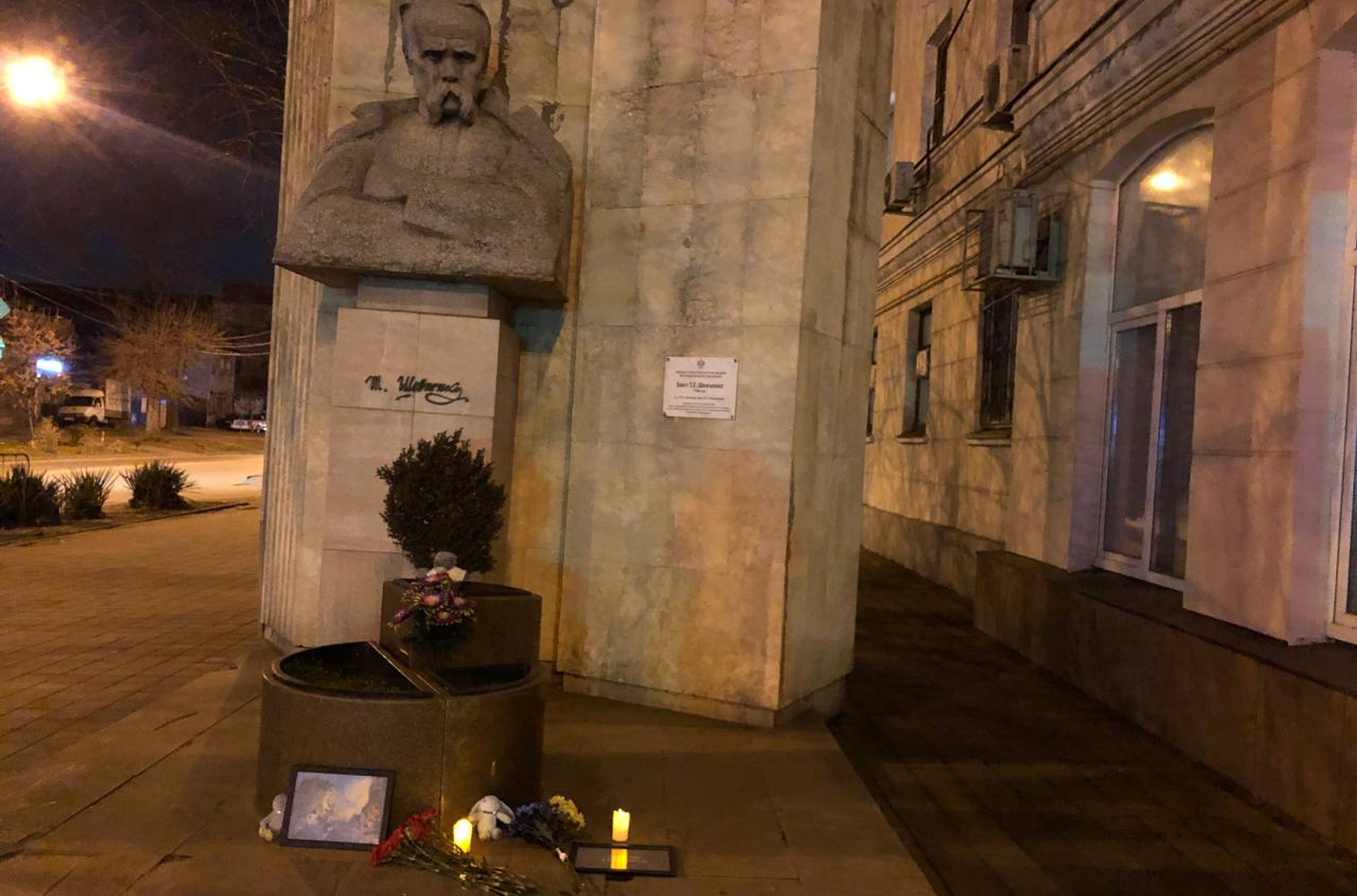 К памятнику Тарасу Шевченко в Краснодаре принесли цветы и фото разрушенного ракетой дома в Днепре