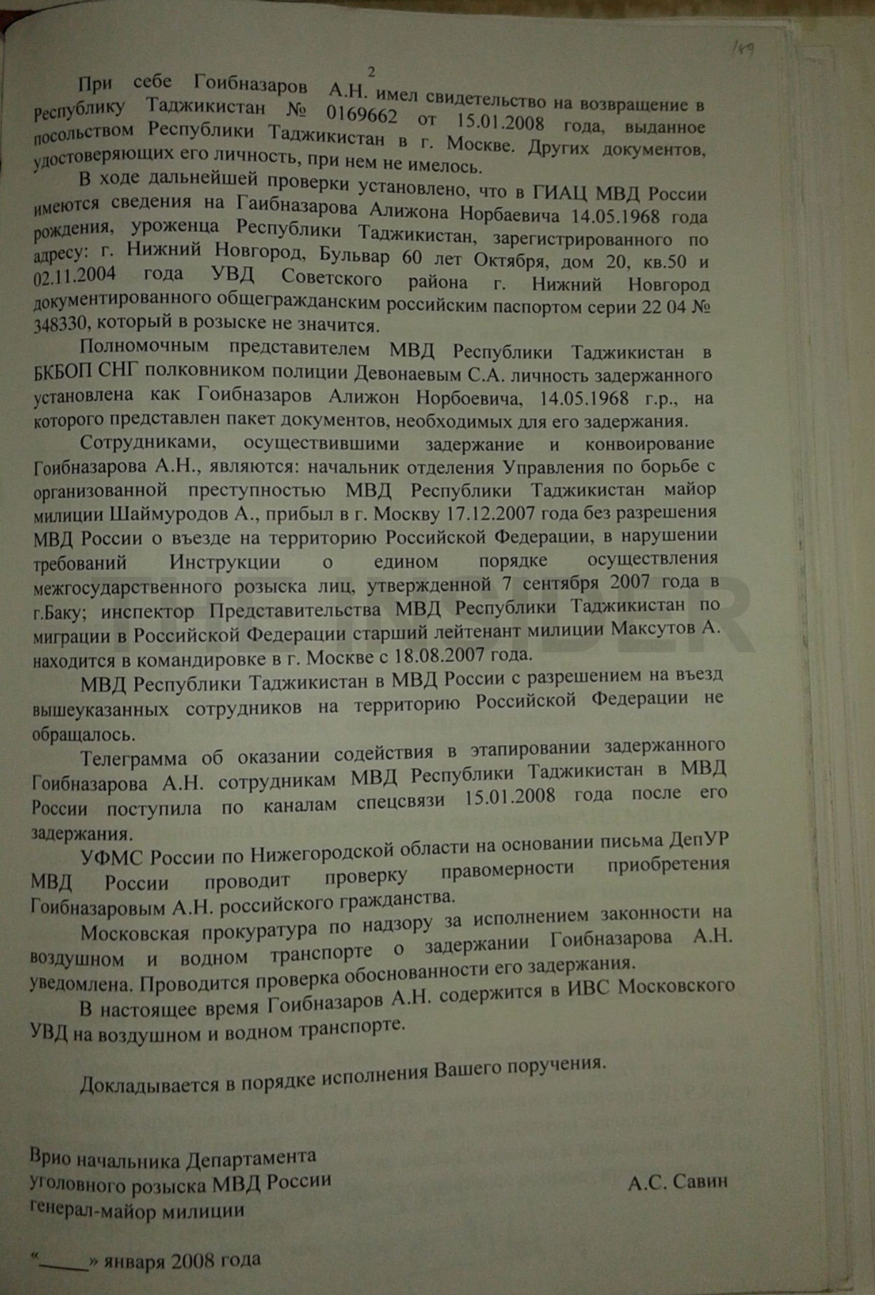 Ко всему прочему, Гоибназаров являлся гражданином РФ, и его экстрадицию нужно было согласовывать с Генпрокуратурой. Дело запахло международным скандалом, а поскольку в незаконном задержании фигурировали российские оперативники, к разбирательствам подключилось Управление «М» ФСБ. Однако сделать это было весьма непросто: Лубянка всё валила на МВД, а те, в свою очередь, кивали на фээсбэшников.