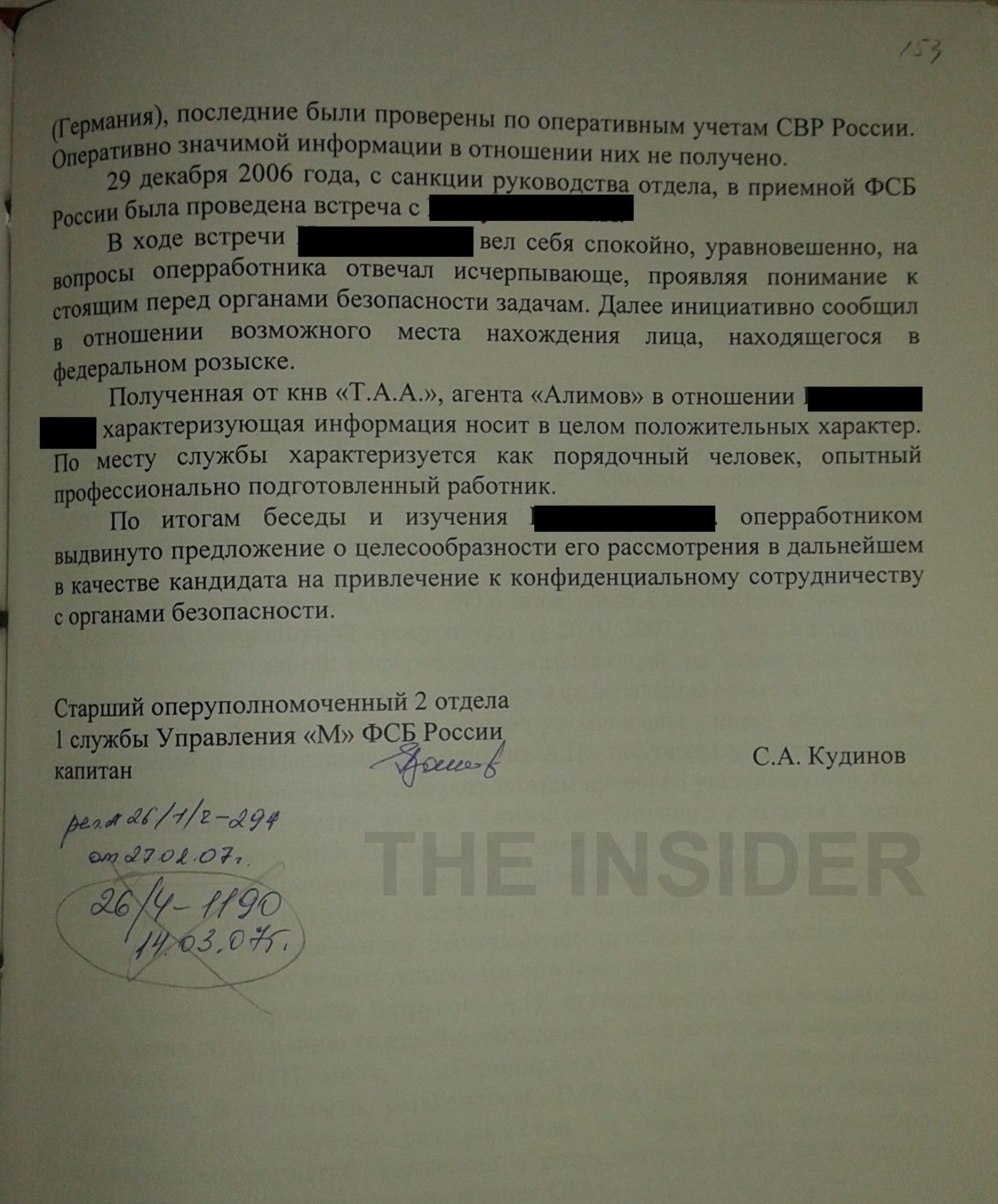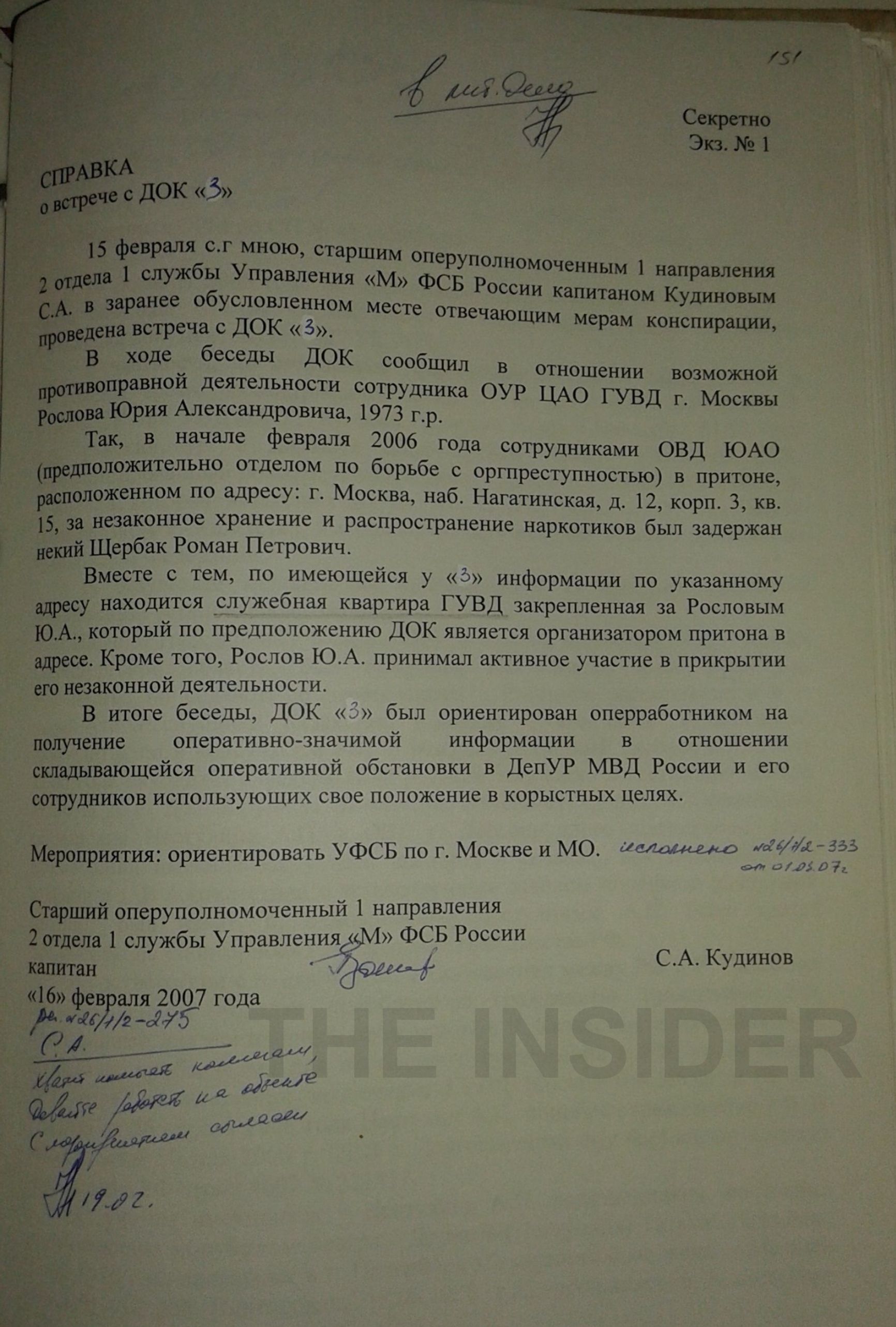 По данным The Insider, агент «З» сам крышевал бордель на соседней улице — и через своего куратора убрал конкурента. Зато майор Кудинов остался доволен и в отчете начальству доложил: